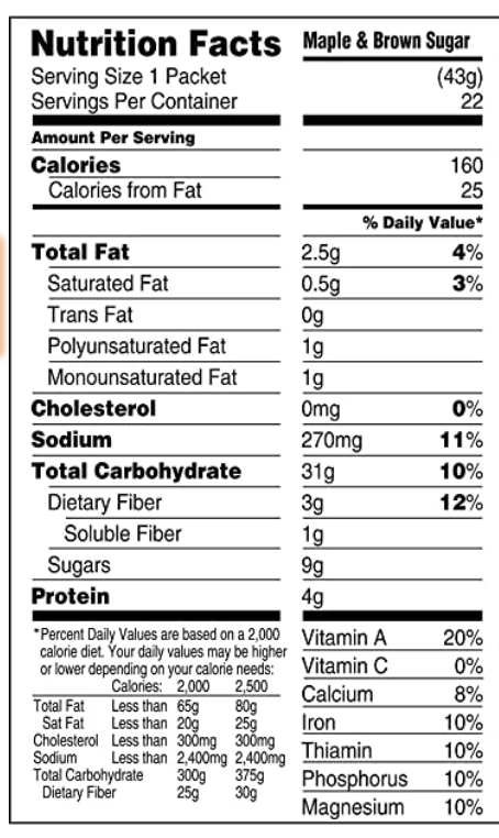 Label quaker instant oatmeal nutrition facts. Check spelling or type a new query. Maybe you would like to learn more about one of these? We did not find results for: