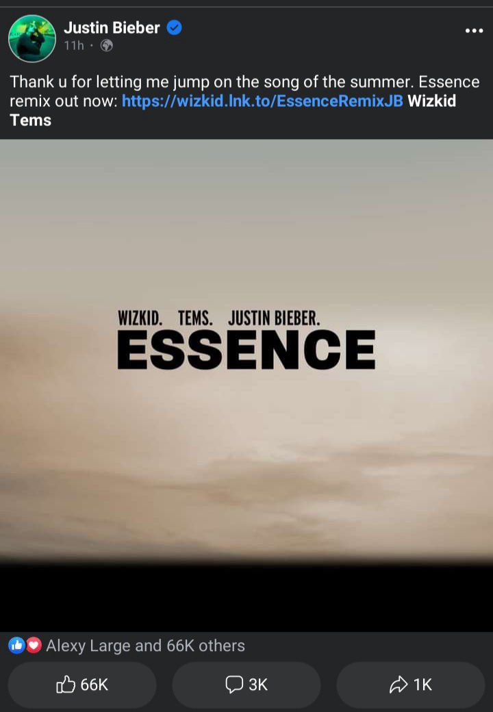 Justin Bieber Thanks Wizkid For Featuring Him On His 2021 ... from 372673.smushcdn.com 6:15pm on jun 30 big wiz has sparked outrage on twitter after a twitter user called him out for paying american singer, rihanna to promote his song, essence. Jun 10, 2021 · many of them compared wizkid's success and awards with his father, fela kuti's success. Jun 13, 2021 · wizkid is proving the hottest ticket in town. With the afrobeats royal burning up the airwaves worldwide with summer sizzler 'essence,' the demand for his 'made in lagos tour' has been off. The song was sent to top 40/rhythmic radio on july 23, 2019, as the second single from the album. Aug 11, 2021 · wizkid taking the afrobeats culture to the 02, london; Jun 27, 2021 · wizkid finally reacted to kuti's shades on instagram by dropping a reply on one of his posts in the comment section. Tiwa savage writes a poem for obama;
